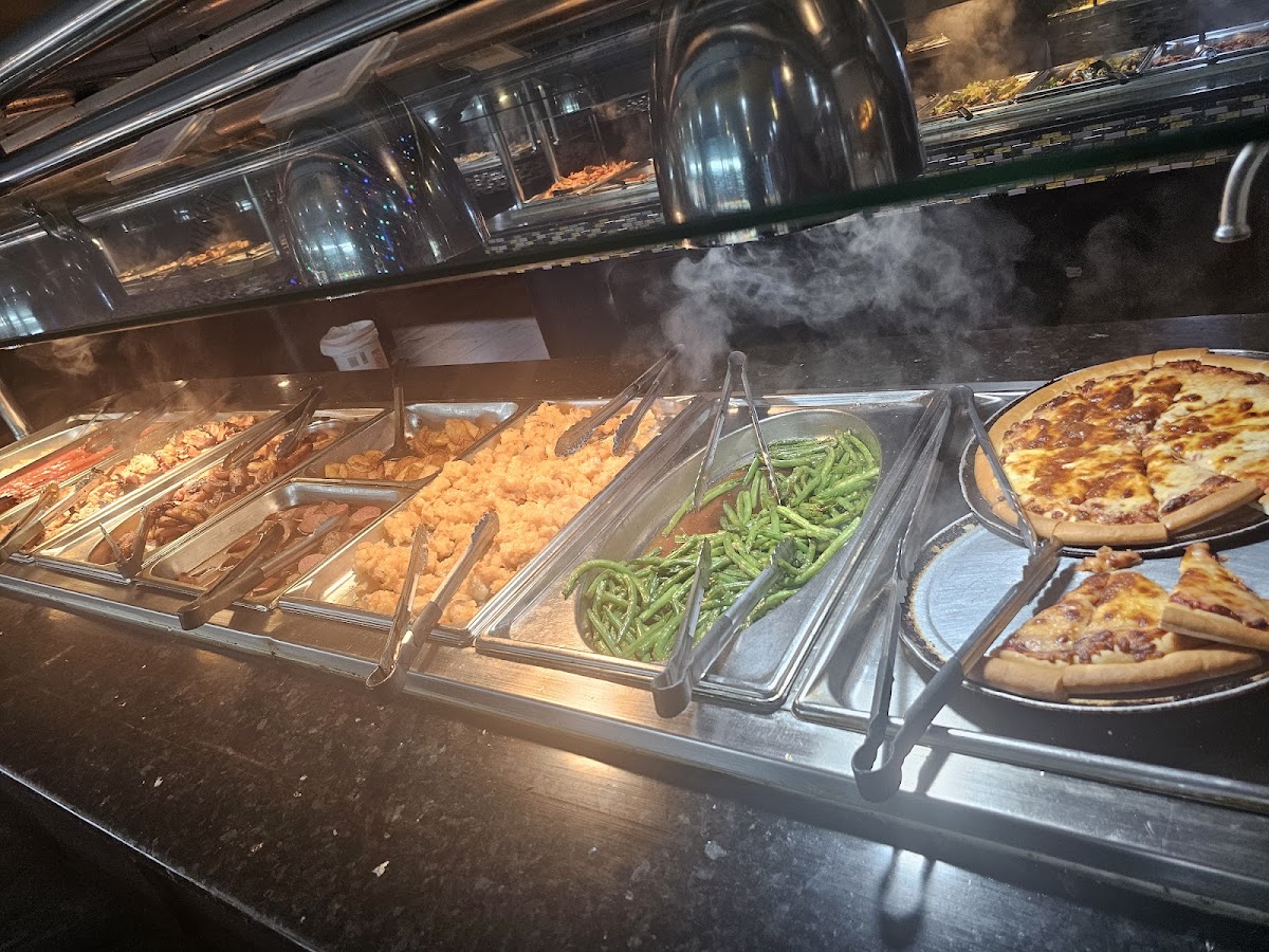 The selection leans heavily toward Asian-inspired dishes, but it doesn’t stop there. You’ll also find American comfort food, seafood options like mussels and shrimp, and a dessert area stocked with pastries, soft-serve ice cream, and seasonal fruit. During one visit, a parent pointed out how helpful it was to have kid-friendly items alongside spicier choices, calling the place family friendly dining and praising the flexibility it gives when eating with different age groups.